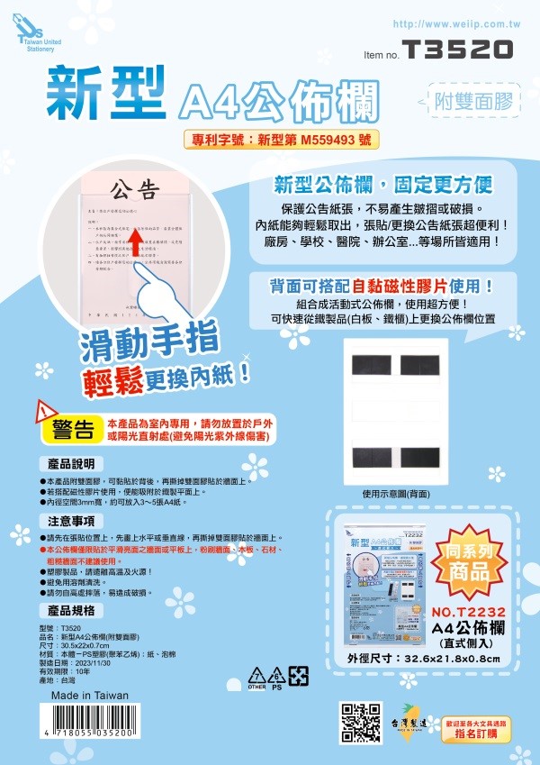 ▶附背板設計 ▶保護公告紙張,不易產生皺摺或破損。 ▶內紙能夠輕鬆取出,張貼/更換公告紙張超便利! ▶廠房、學校、醫院、辦公室...等場所皆適用! ▶內徑空間3mm寬,約可放入1~2張A4紙。
